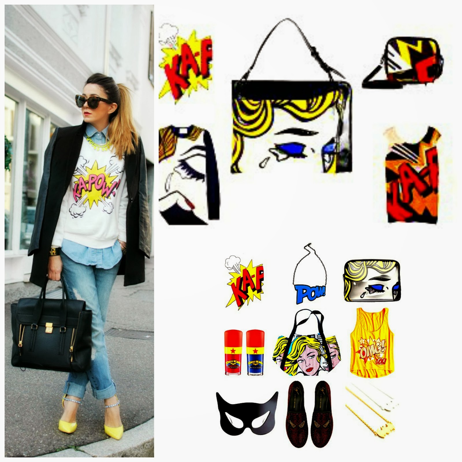 You can't avoid the comic-/boom- pow trend at the moment! Add some nice and sweet, or on the other hand evident details, to it and try to feel a little bit back in time. When comics were the only thing to think about. When life was one fairytale. And now, you can reset the time. Watch the pictures below and take your time to fall in love with this amusing trend.